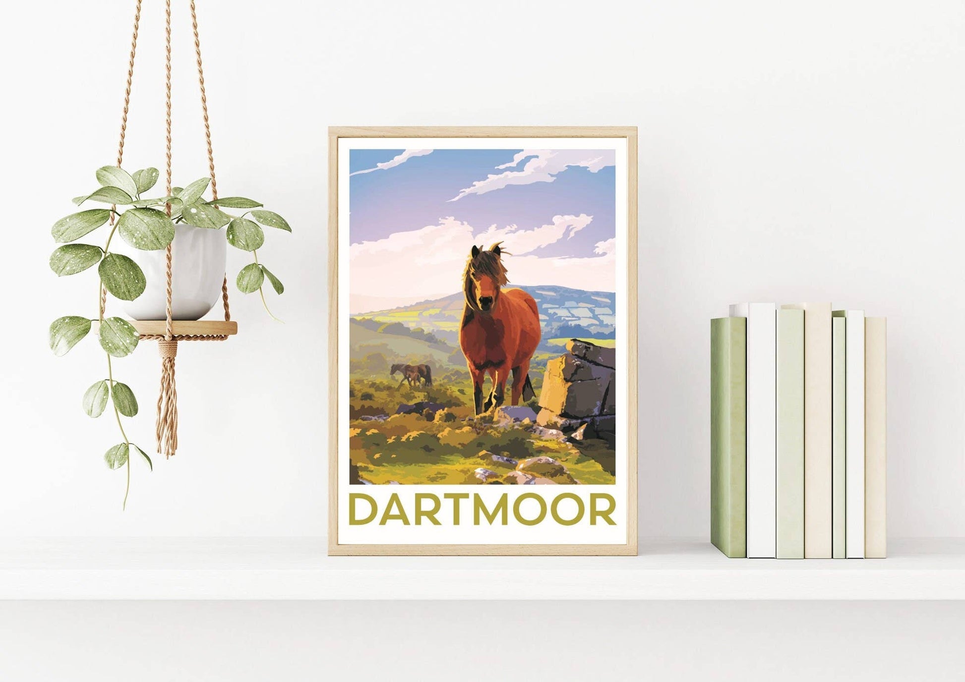 Dartmoor Pony Poster A4, Vintage Dartmoor National Park Travel Print, Retro Poster, Devon Artwork, Horse Rider Gift Inspired by the native Dartmoor Pony and wild landscapes of Dartmoor National Park, this vintage travel poster is perfect for anyone who loves Dartmoor and its ponies. Following design cues of the classic railway and travel posters, it's a bright and uplifting artwork, exclusively designed for us here at Pony Nut Gifts.
